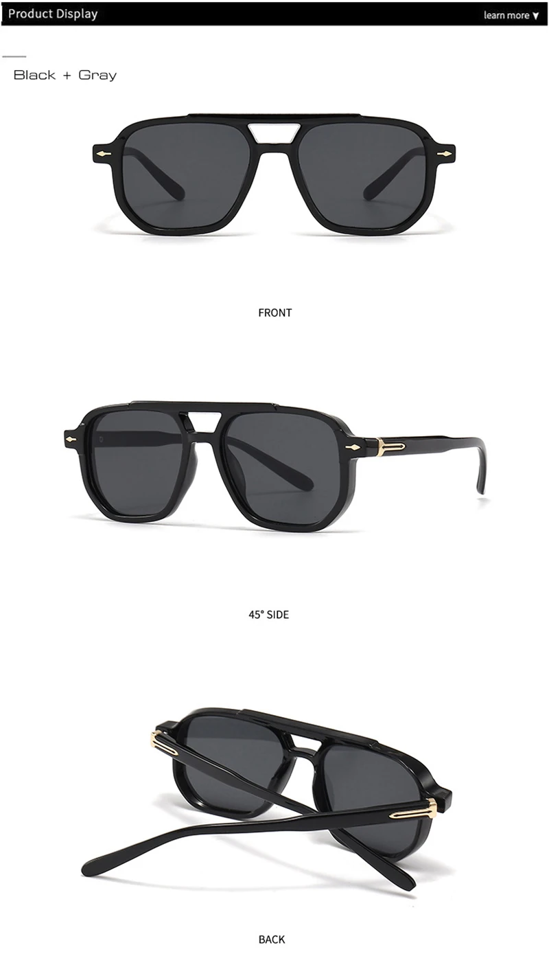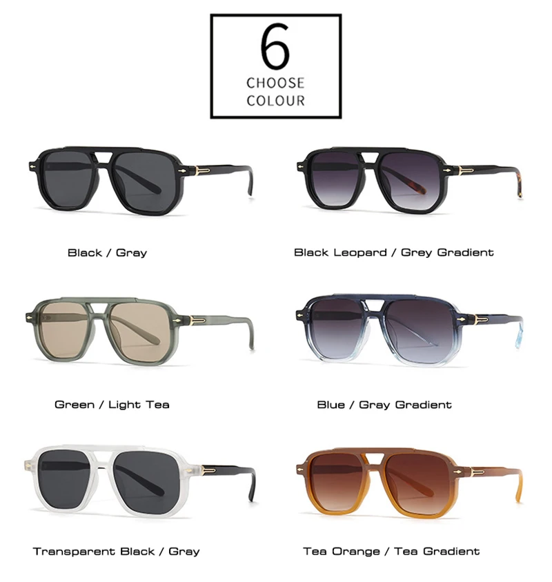 SHAUNA Retro Double Bridges Square Women Sunglasses Shades UV400 Fashion Men Trending Rivets Gradient Sun Glasses