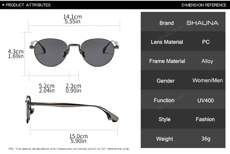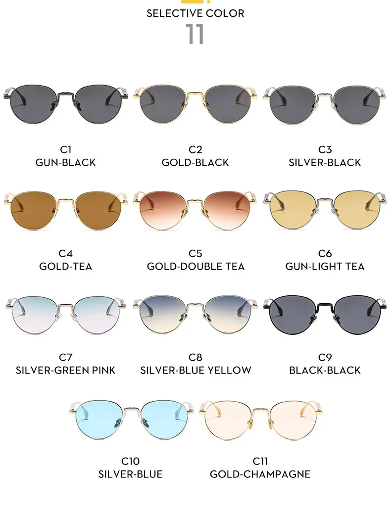 SHAUNA Retro Metal Round Punk Men Sunglasses Shades UV400 Fashion Trending Gradient Women Sun Glasses