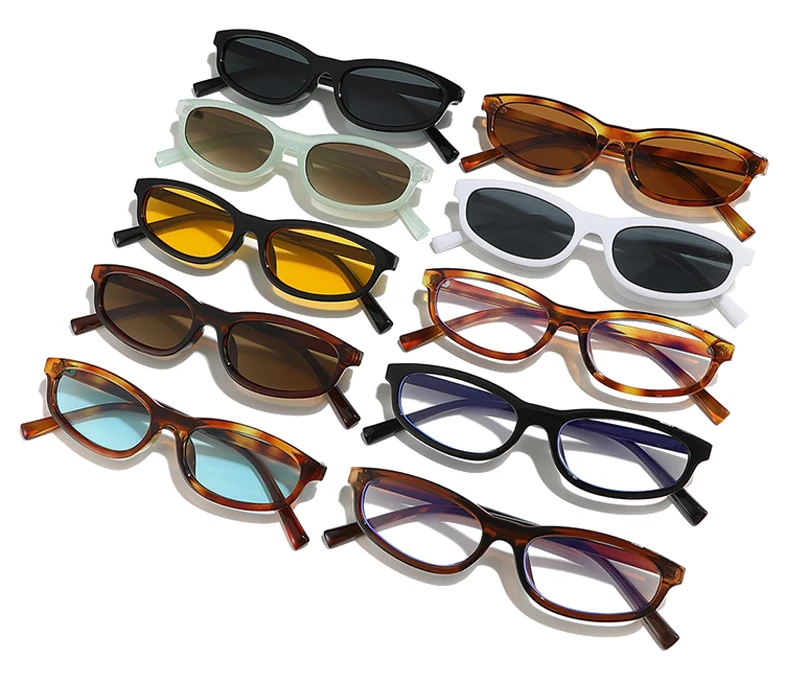 SO&EI Fashion Small Cat Eye Women Sunglasses Retro Yellow Blue Shades UV400 Men Trending Sun Glasses