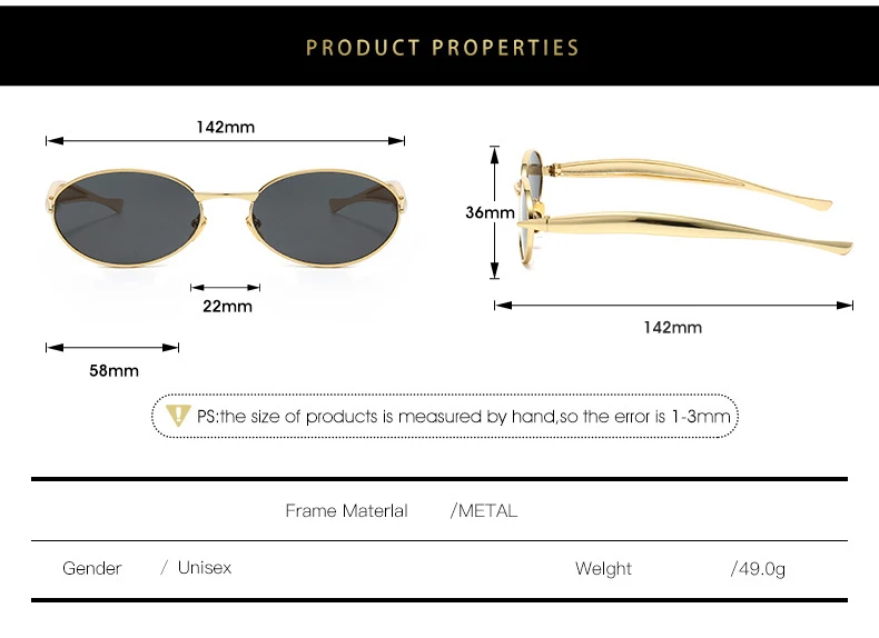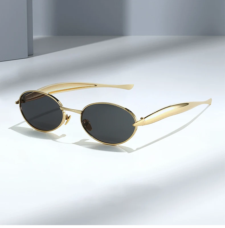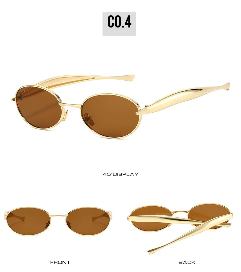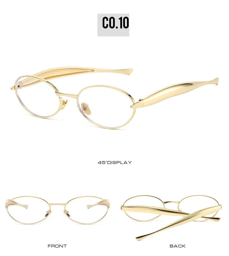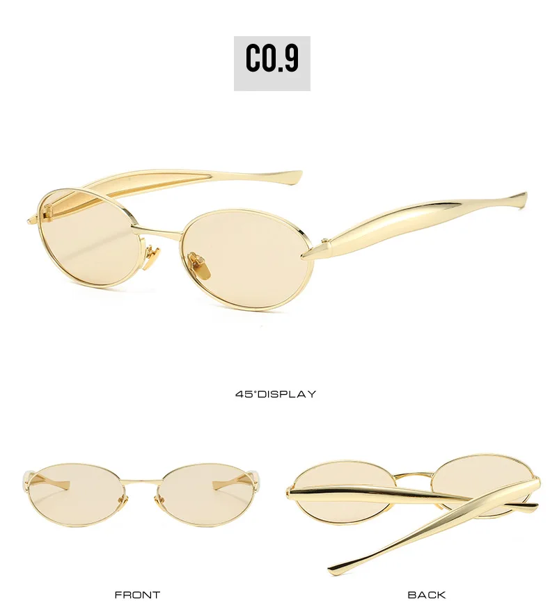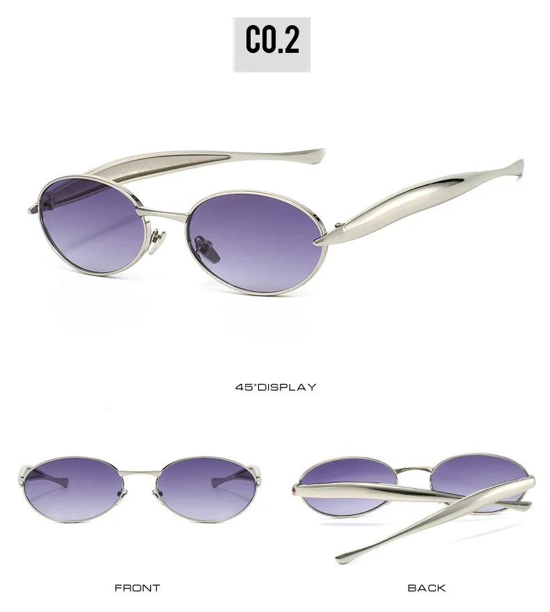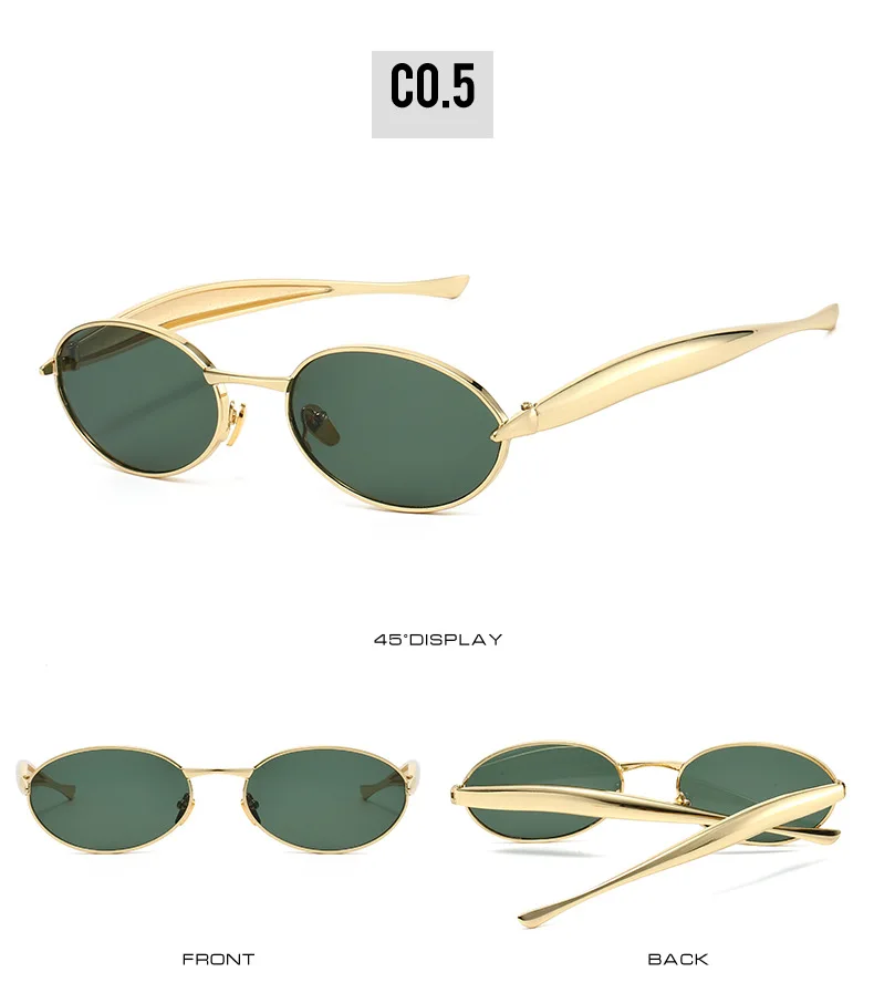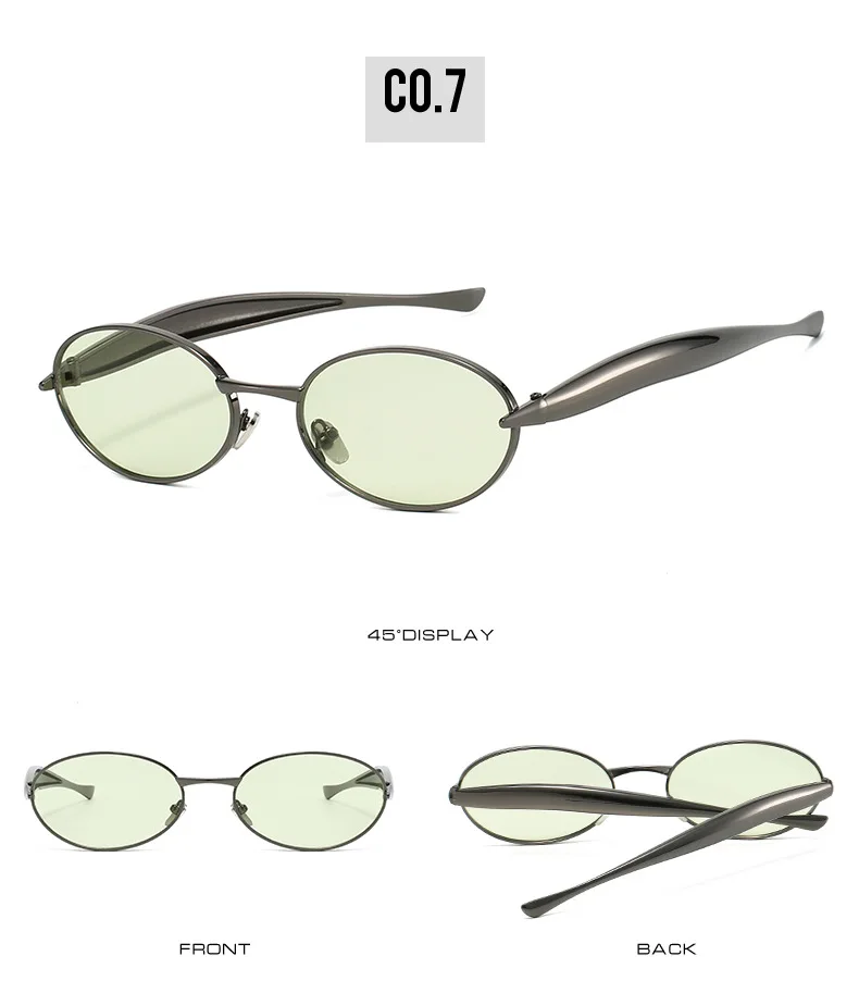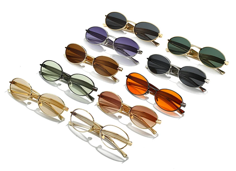SO&EI Fashion Small Oval Metal Women Sunglasses Retro Clear Ocean Gradient Lens Shades UV400 Men Punk Sun Glasses