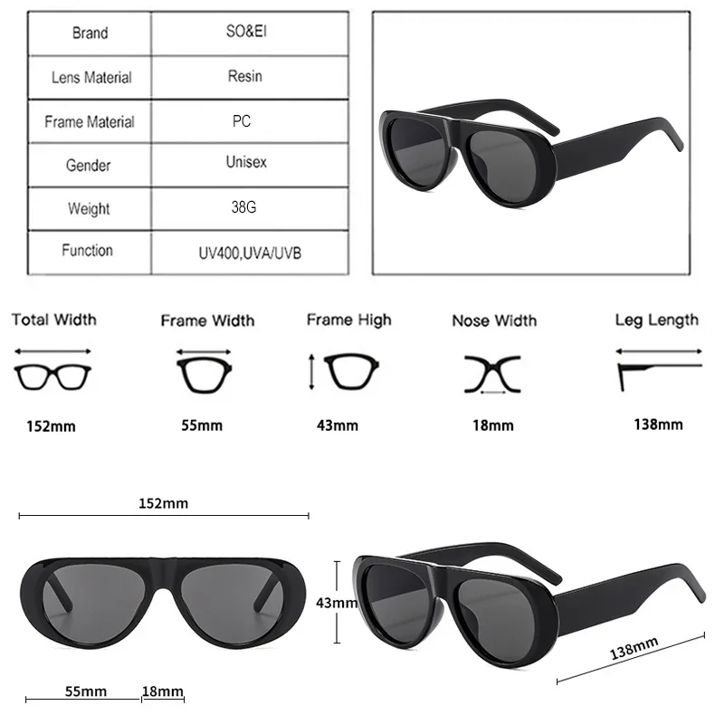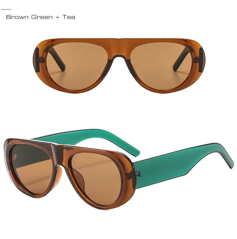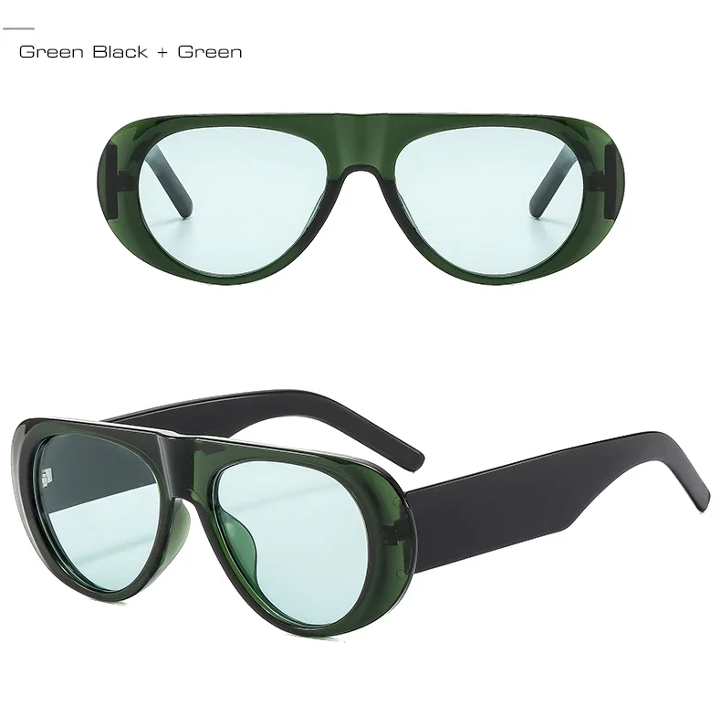 SO&EI Ins Popular Fashion Pilot Women Sunglasses Retro Blue Green Shades UV400 Men Trending Wide Legs Sun Glasses
