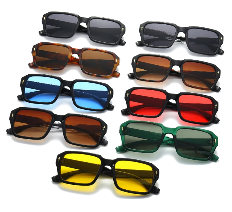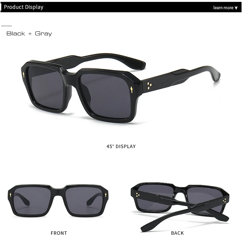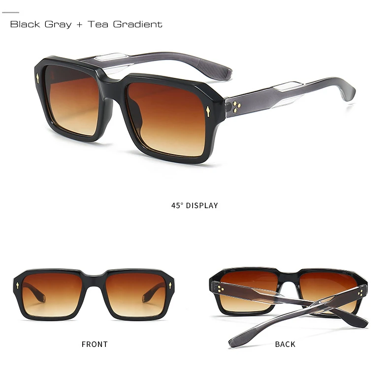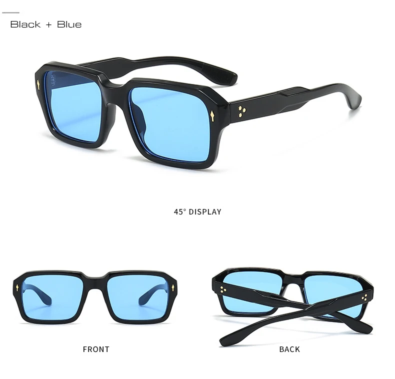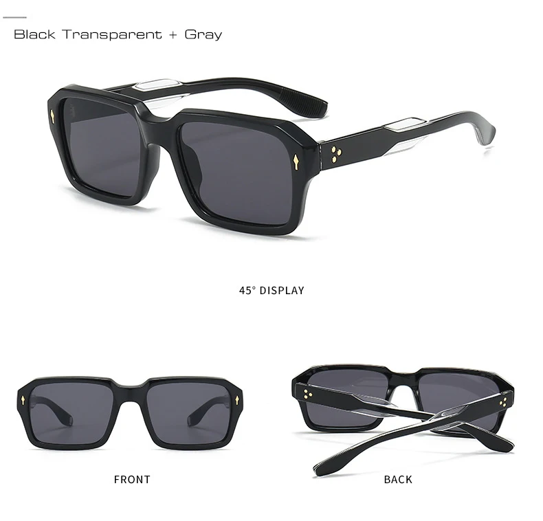 SO&EI New Square Women Punk Rivets Sunglasses Fashion Clear Ocean Gradient Lens Shades UV400 Men Sun Glasses