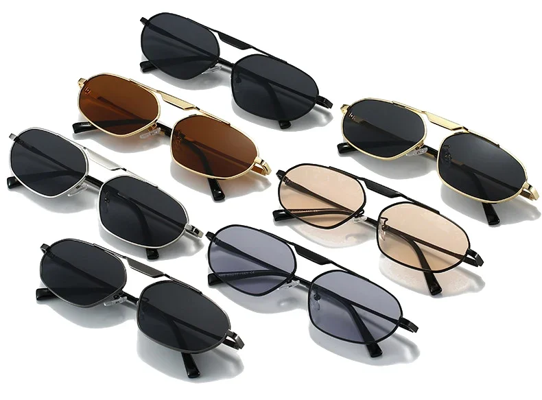 SO&EI Retro Metal Cat Eye Women Sunglasses Fashion Brand Designer Irregular Polygon Men Punk Shades UV400 Sun Glasses